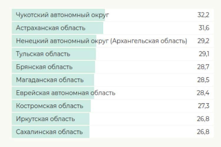 В ЕАО сократились и те, и другие. Также как в Липецкой, Орловской, Рязанской областях, Ненецком АО, Крыму.