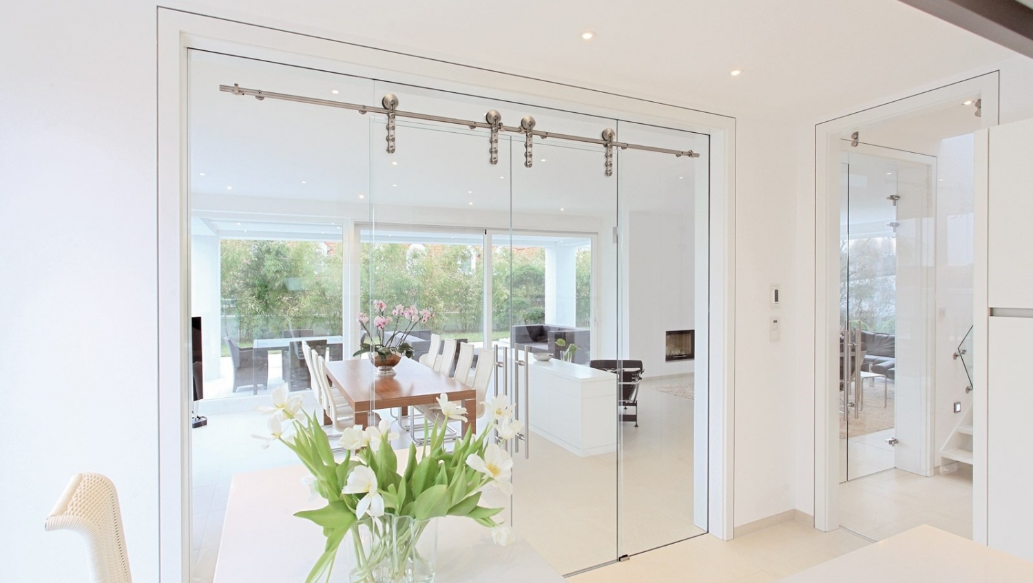 При выборе необходимо определиться с конструкцией. Раздвижные стеклянные двери выглядят аккуратнее, а также позволяют сэкономить много места. При желании продукцию можно оснастить дополнительными функциями, такими как автоматический механизм для открывания и закрывания или автоматический доводчик.