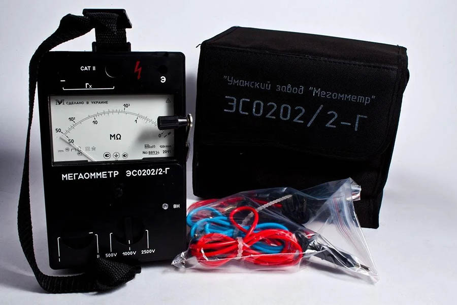 Итак, мегаоммерт в виде прибора ЭС0202/2Г производится в пластиковом корпусе, где на передней панели имеется отсчетное устройство с органами управления и местами для подключения проводников. Снизу корпуса виднеется настроечный отсек. В целом, работа этого умного устройства основывается на измерении отношений логарифмическом. Важно перед налом работы с прибором убедиться в том, что будет отсутствовать напряжение на токовыводящих частях испытываемой электроустановки. Далее подключаются соответствующие шнуры согласно приложенной инструкции по эксплуатации прибора. Теперь потребуется установить в нужное положение переключатели диапазонов (напряжений). Все, по окончании вышеописанных подготовительных работ начнется вращение рукоятки с номинальной скоростью в сто тридцать оборотов в минуту и с подачей измерительного напряжения, а также со свечением индикатора на панели прибора.