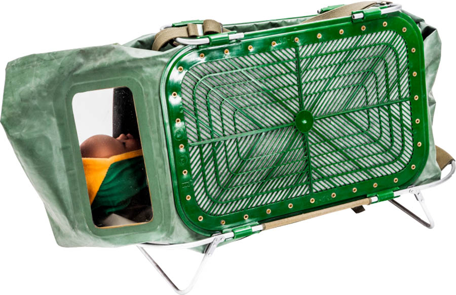 Для детей от рождения до 1.5 лет противогаз имеет форму сумки-переноски. Поступление в камеру кислорода и удаление углекислого газа производится через фильтры. Детская переноска КЗД-6, в отличии от предыдущих моделей, обладает следующими преимуществами: