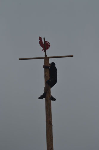 Красивые девушки в нарядных сарафанах раздавали пряники и баранки пришедшим зрителям. Так же любой желающий мог забраться на самый верх по шесту, однако не всем это удалось.