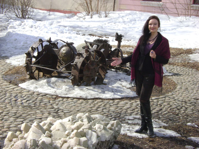 Ну, а кто у истоков? Геолог Гвоздицкий, отбивший своим геологическим молотком первые друзы галенита и сфалерита – свинцово-цинковой руды, которая чаще всего встречается рядом с прожилками и глыбами бело-розового кальцита. По инициативе Якова Дмитриевича Медведева одна из таких глыб появилась у входа в Дальнегорский музей. И именно отсюда директор музея Маргарита Эбингер (на снимке) приглашает гостей посетить экспозиции.