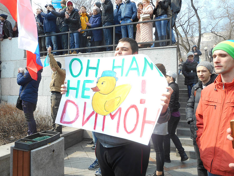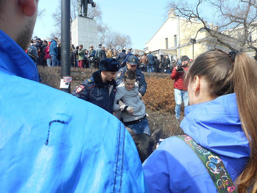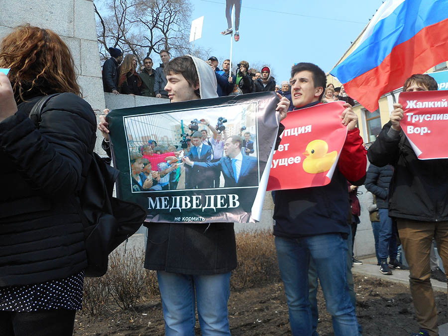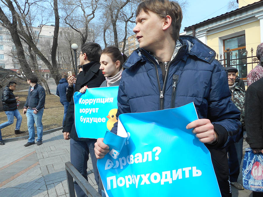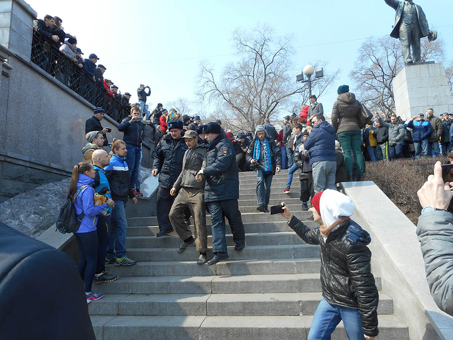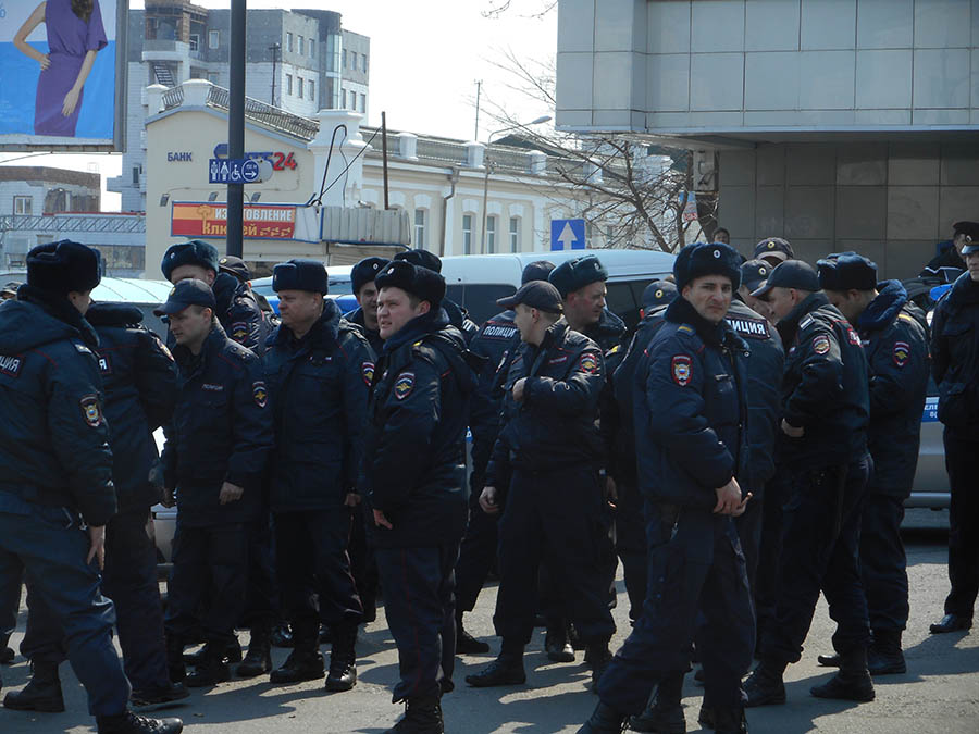 Власти никак не согласовывали место проведения, все оказалось занято. В результате владивостокцы вышли на так и не согласованный митинг на привокзальную площадь. Там был согласован митинг Росгвардии, но кроме плакатика «Где Россия – там победа» в начале антикоррупционного митинга никаких следов Росгвардии на месте обнаружено не было.