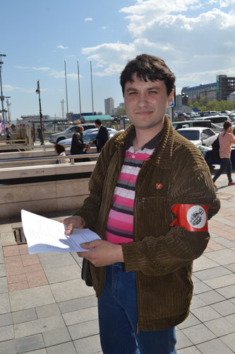 Сегодня во Владивостоке прошел пикет возле общественной приемной Путина напротив Дальрыбвтуза проводимый активистами Левого фронта и Другой Росиии Основные требования, выдвигаемые митингующими, были следующие:
