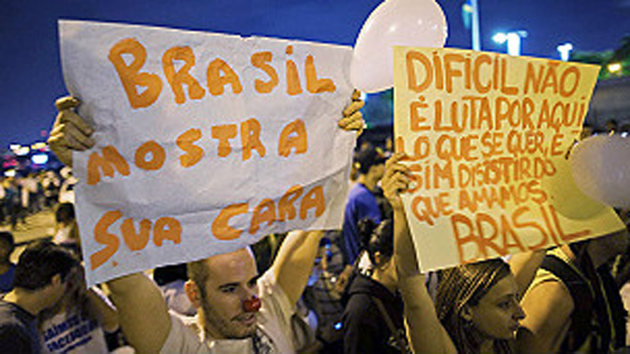 Марши разгневанных граждан, организованные главным образом через социальные сети, перекрыли центральный улицы и парализовали движение в более чем полдюжины бразильских городов, передает Reuters.