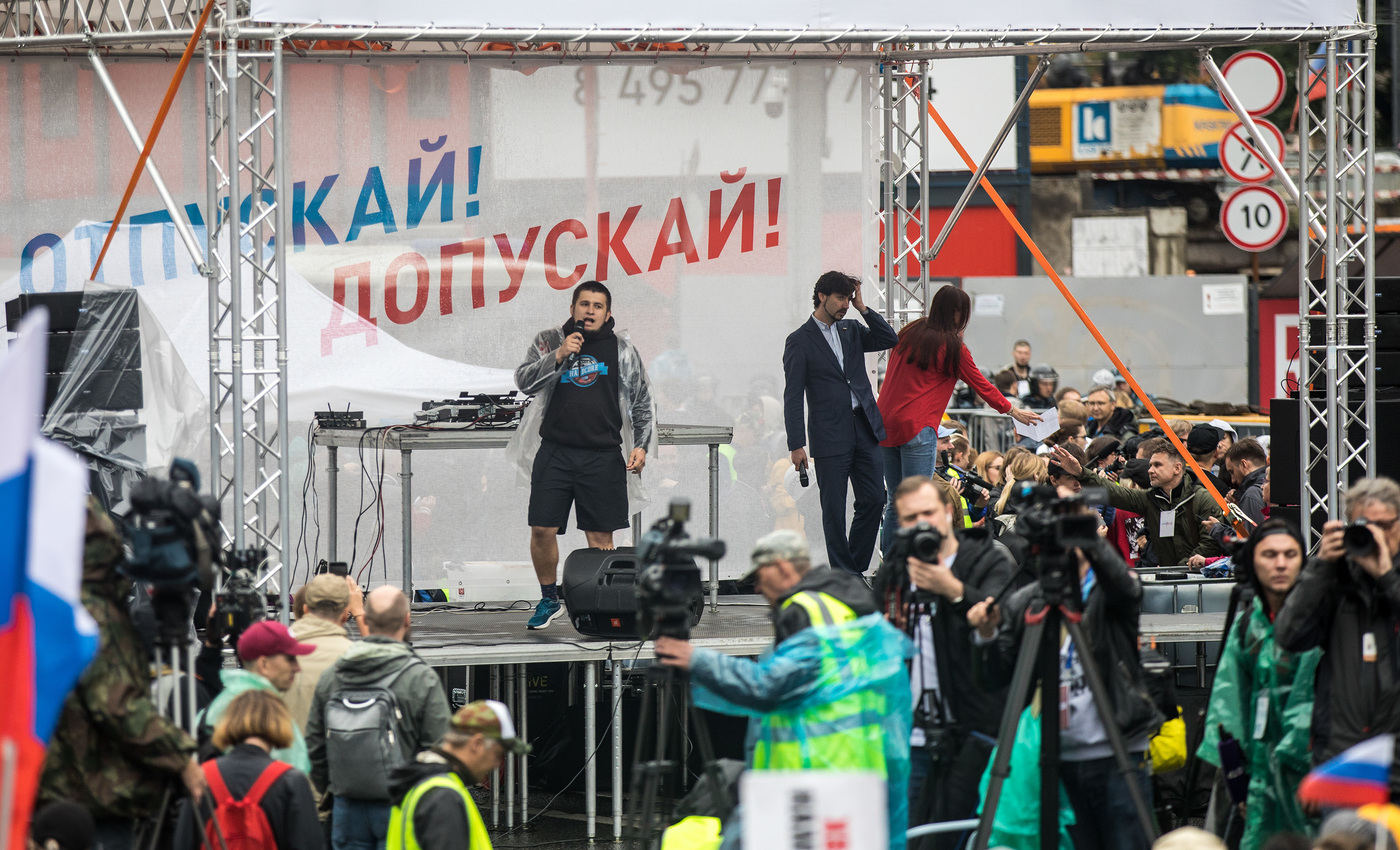 Алексей Полихович на сцене митинга, 10 августа 2019 года. Фото: Давид Френкель / Медиазона