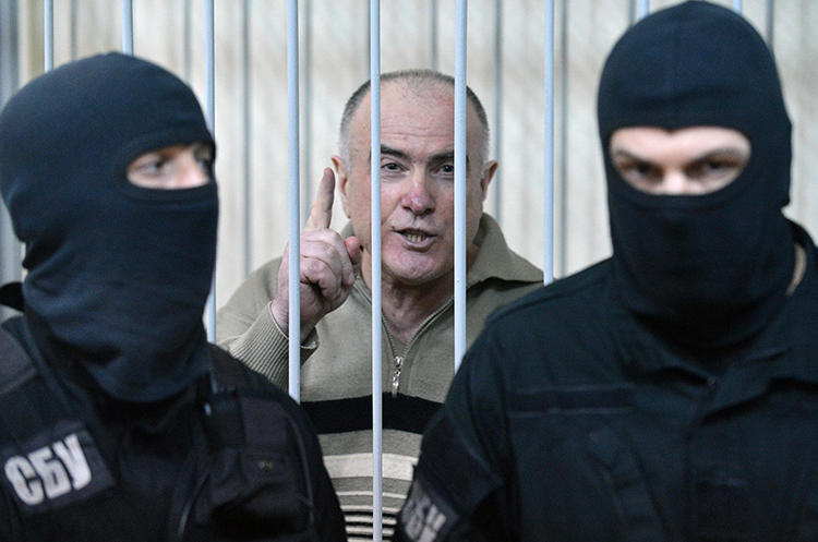 Aleksei Pukach is seen at a Kiev district court on January 29, 2013. Pukach was convicted in the 2000 murder of journalist Georgy Gongadze, and is now appealing his life sentence. (AFP/Sergei Supinsky)