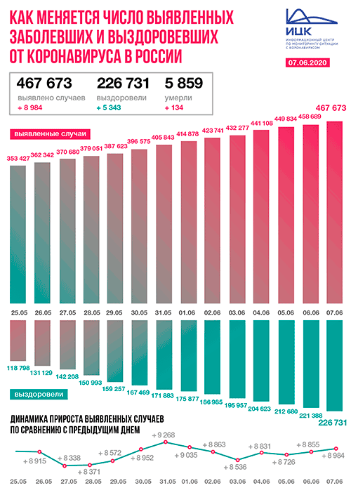 Информационный центр по мониторингу ситуации с коронавирусом (ИЦК) направляет оперативную сводку на 07.06.2020