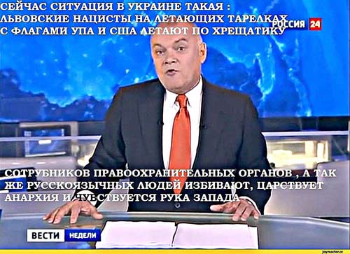 О чем это свидетельствует? А только о том, что кроме демонстрации провокационных программ государственных каналов России нужно запрещать в Украине работу и их журналистов. Ведь они не просто беззастенчиво лгут, называя черное белым, но преднамеренно провоцируют дестабилизацию политической ситуации в Украине, умышленно искажают действительность для мирового сообщества, нарочно провоцируют больное воображение некоторых людей, ищущих только повод отдать команду на очередной захват территории Украины под благородным предлогом наведения порядка. Очередного «принуждения к миру».