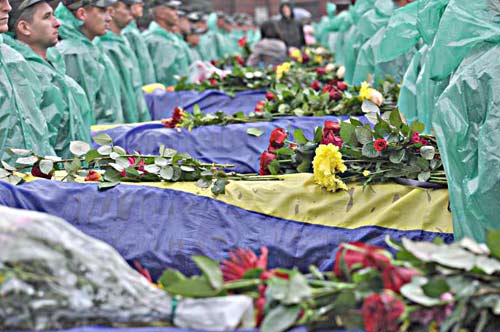 23 сентября, на центральной площади, переименованной с площади им. Ленина в площадь Небесной сотни, в 10:00 было торжественное прощание с погибшими на Донбассе неизвестными солдатами. Их тела или то, что от них осталось, были выставлены в закрытых гробах. 21 гроб! И в каждом чья-то оборванная жизнь... Я не думаю, что это последние жертвы...