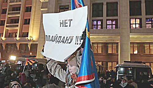В это же время сторонники Путина, считающие его своим вождем и возлагающие на него все надежды, продолжают воевать на Украине – и дерутся за донецкий аэропорт от имени Путина; от его же имени, видимо, совершались там многочисленные «отжимы», а также провозглашались запреты домостроевского толка.
