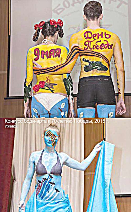 А те, кто к Великой Отечественной не имеет отношения по причине молодости (порой – относительной), выпрыгивают из себя, как бы чего придумать и скреативить. То разрисовывают полуголые тушки молодых дурачков и дурочек – аляповато, безвкусно, непрофессионально. А в Красноярске, сообщает FlashSiberia, конкурс кондитерский провели. Какой бы торт забацать с победной символикой?