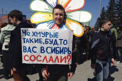 В Новосибирске традиционно прошла монстрация, которую традиционно запретили. То есть не совсем запретили, разрешили присоединиться к колоне, которая согласится. Монстранты хотели сначала к колонне КПРФ присоединиться, но коммунисты отказали: у нас все серьезно, а у вас абсурд какой-то! Ну, положим, абсурд не только на плакатах монстрантов… Хотя да, задумывалась монстрация (а она с 2004 года проходит) как демонстрация абсурдности окружающей жизни – ну и лозунги соответствующие. Придумал ее художник Артем Лоскутов и получил за это в 2010 году государственную премию в области современного искусства «Инновация».