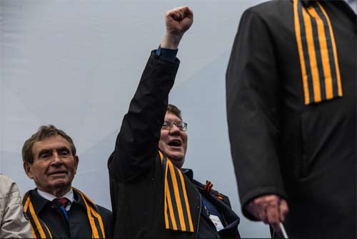 Праздник весны – это то, что было на мосту и перетекло на площадь Борцов революции. Народ шел с шариками. Веселились… И да, у губернатора Миклушевского и окружения были таки георгиевские ленточки – как полагается, приколоты на лацкане одежды. Не слишком уместные, не для этого праздника – но небольшие, не слишком заметные… сойдет.
