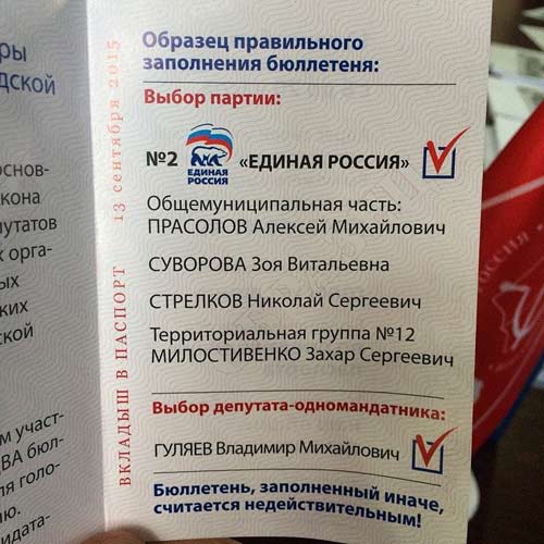 Ни у одного из присутствующих при данной процедуре не возникло нареканий как к самой процедуре, так и к целостности конвертов для голосования. Представитель комиссии обратил внимание всех участников процесса на то, что используемые конверты имеют специальную перфорацию, которая является степенью защиты и предотвращает любые попытки несанкционированного вскрытия этих конвертов».