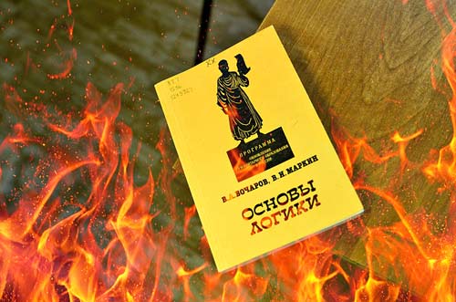 Вообще-то библиотеки всегда чистили от книг, пришедших в негодность по ветхости, и эти книги действительно уничтожались – сжигались, конечно, потому что бумага хорошо горит. Но раньше этому не придавали политического смысла и не афишировали. А сейчас уничтожили вполне себе новые книги и разрекламировали акцию. Ну и, конечно, замечателен список «чуждых» нам книг. Учебник логики – да, логика – наше слабое место, а потому не нужна.