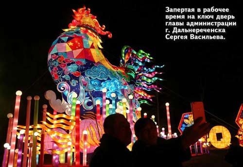 Ну, думаю, и секретаря с собой взяли, стало быть, протоколировать празднование Праздника фонарей? Хотелось бы, хотя бы почитать, как проходит такой сказочный, восточный Праздник фонарей в дружественной стране Китая. Неплохо, конечно, добрый опыт, добрые традиции перенимать и всё лучшее внедрять в родном Дальнереченске. А сейчас стоит он в унылом запустении. Может сейчас, после приезда уже отдохнувших чиновников, они фонариками хотя бы украсят город?