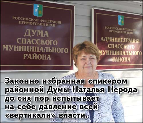Ну, а Спасский районный суд, хвала ему и уважение, не прогнулся под краевую власть и вынес справедливое решение, оставив в законной силе избрание председателем Думы Спасского муниципального района Натальи Нерода.