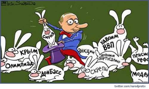 А в этом году постепенно стало выясняться, что энтузиазм по поводу Крымнаша как-то стал рассасываться. Кризис, знаете ли. Хоть чиновники и уверяют нас, что экономика растет, но цены-то растут тоже! А из телика нам говорят, что это за Крым. Санкции.
