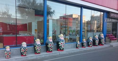 Справа – так мило, с матрешками вдоль стены, встречает китайцев магазинчик русской еды при газете.