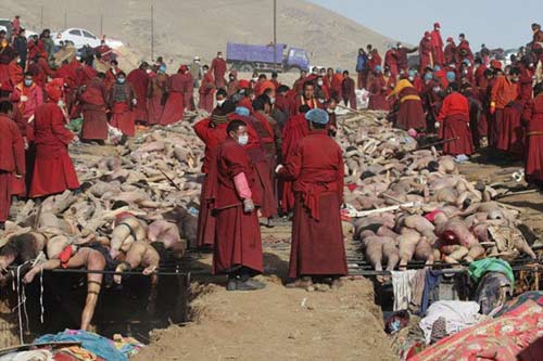 Оказывается, тибетские монахи помогают жертвам землетрясения в Китае.