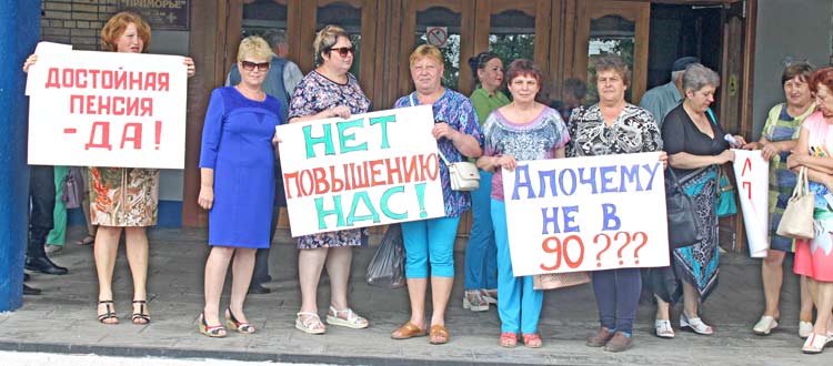 В ходе диалога был найден компромисс, но с условием, что у городского центра культуры «Приморье» пройдет молчаливый пикет – без выступлений, жарких речей, митинговых страстей. И участникам акции пришлось обойтись без официальных выступлений, без принятия резолюций и писем во властные структуры, однако плакаты пикетчиков говорили сами за себя: «Мы против пенсионной реформы!», «Не хотим работать до смерти!», «Достойная пенсия – да!», «Сначала рабочие места – потом пенсионная реформа!», «Хватит грабить народ!»…