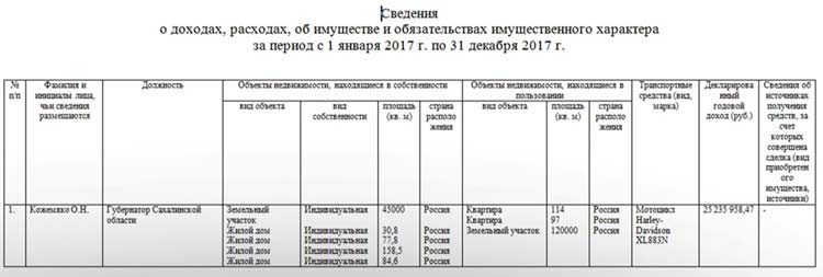А вот декларация Кожемяко. В ней он указывает только собственные доходы, недвижимость и любимый мотоцикл Харлей Дэвидсон.