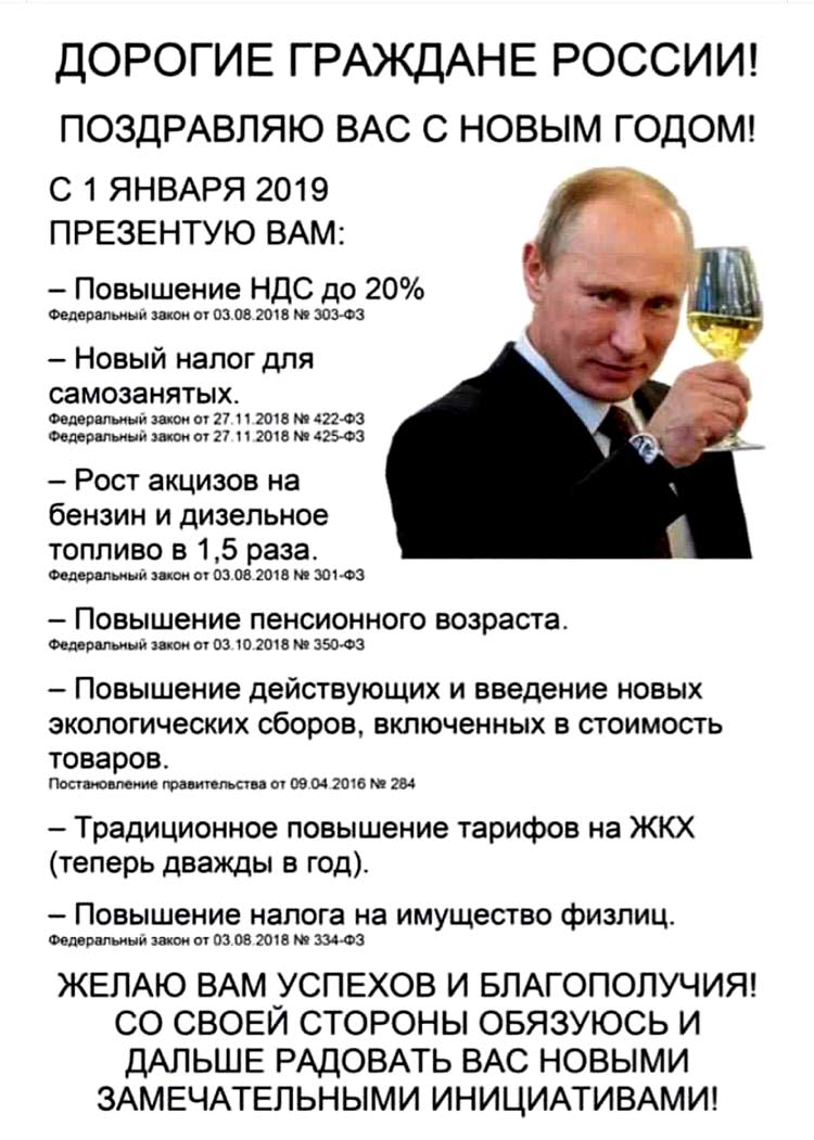 Так обстоит дело почти везде, но кое-где в мире хотя бы ради порядка выдумывают планы, намечают цели, показательно заботятся о благе народа. Наша власть отказалась от любых форм лицемерия, не прикидывается даже миролюбивой, и за это ей тоже спасибо.
