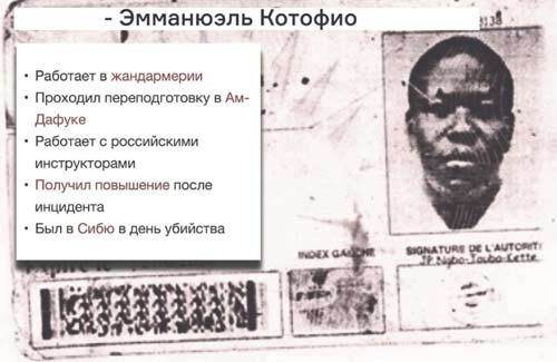 В свою очередь, Котофио во время поездок журналистов постоянно находился в непосредственной близости от них, а 30 июля был на месте убийства в компании двух африканцев и трех европейцев — предположительно, наемников.