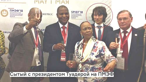 На Петербургском международном экономическом форуме в 2018 году он даже попал на одно фото с президентом ЦАР Туадерой.