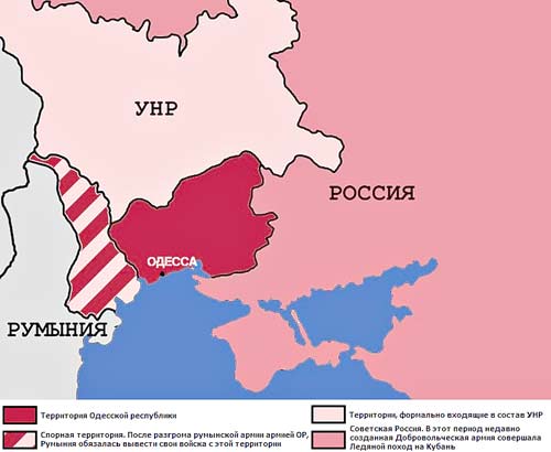 26 января 1918 года РСФСР официально разорвала отношения с Румынией, начавшей оккупацию Бессарабии (и наложила секвестр на ее золотой запас, который был вывезен из Бухареста в Москву). Однако реально противостоять румынам могли только мелкие островки советской власти, одним из которых стала Одесская Советская Республика, образованная 18 января 1918 года на части Херсонской и Бессарабской губерний.