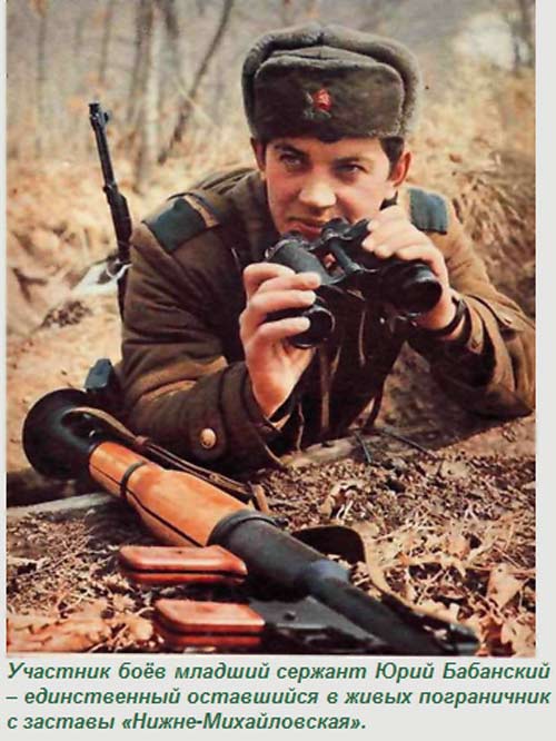 Увидев это, Бабанский приказал открыть ответный огонь. Китайцы перенесли артиллерийский огонь на группу Бабанского, БТР и машины. Обе машины были уничтожены, а БТР получил повреждения.