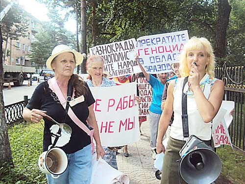 – Мы, участники митинга, утверждаем, что в России против народа ведётся жилищно-коммунальная война, – продолжили говорить женщины, – растут цены на продукты питания, услуги, дизельное топливо и бензин, увеличиваются тарифы ЖКХ, тарифы на теплоснабжение и электроэнергию. Мы требуем от властей проверить экономическую деятельность поставщиков электроэнергии, а также управляющих компаний, обнародовать статьи доходной и расходной части их бюджетов, усилить контроль за качеством услуг, предоставляемых в сфере ЖКХ.