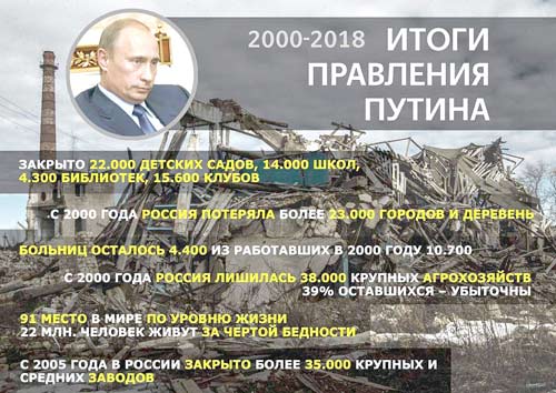 Вот только времени на наше дальнейшее развитие может не хватить, слишком уж печальны итоги правления Владимира Путина (см. ниже коллаж Ok.ru).