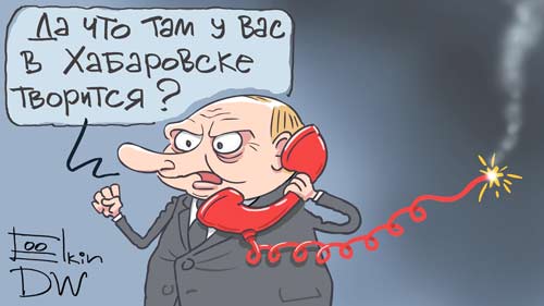 Кремль буксовал тоже. Больше недели буксовал. Ждали, наверное, что в Хабаровске народ побузит и успокоится. Или разгонят силовики, когда меньше народу станет. А он никак! Что делать? Пресс-секретаря Путина СМИ донимали вопросами: ну, что там? Уволил? Назначил? Кого? (по поводу «выпустил» вопросов не было, все ж реалисты) Почему выходят? Заплатили? Кто?