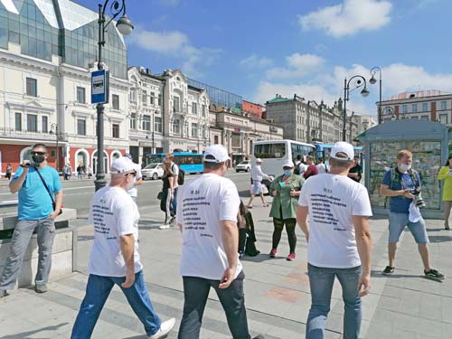 В полдень по субботам уже второй месяц подряд традиционно активные граждане выходят покормить голубей, поддержать протестующих хабаровчан и другие не менее важные инициативы, например, собрать подписи за прямые выборы глав городов и районов Приморского края, против строительства экологически опасных производств на побережье нашего края и т.д.
