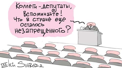 В Госдуме — неделя репрессий и закручивания гаек. Как только депутаты проголосовали за право Путина стать пожизненно неподсудным, сразу принялись за остальных россиян. Внесённые в Думу законопроекты запрещают остальным россиянам: