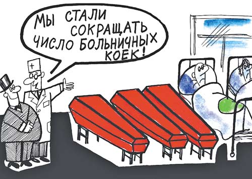 Благодаря «оптимизации» медицины, сколько по стране закрыто медпунктов, больниц, поликлиник? Вместо того, чтобы модернизировать, повышать зарплату рядовым медикам, закрыли медучреждения. В избытке – только платные. А куда деваться тем гражданам, кому не по карману платная медицина? Пенсии и зарплаты у большинства народа мизерные, это значит – прямая дорога в гроб?