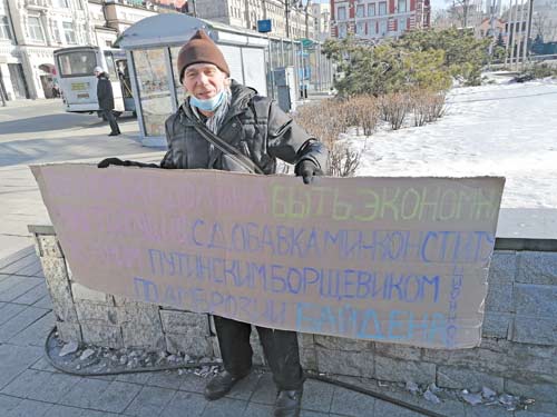 Был в этот день у памятника Борцам за власть Советов и плакат, посвященный дню Конституции, от Геннадия: «Экономика должна быть экономной. Конституция с добавками – конституционной. Ударим путинским борщевиком по амброзии Байдена».
