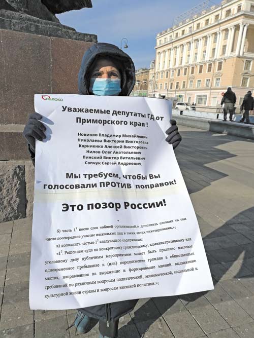 Против этого законопроекта во Владивостоке тоже был плакат с требованием ко всем депутатам Государственной Думы от Приморского края голосовать против таких поправок, так как этот законопроект – позор России!