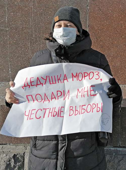 А потом один молодой человек с таким листком бумаги странного содержания в руках вплотную притерался к активистке, стоящей с плакатом: «Дедушка Мороз, подари мне честные выборы». Он прятал свое лицо под маской и шапкой, отказывался что-либо сказать по поводу своей бумажки с надписью: «В России все плохо. Лучше только Я!!!»
