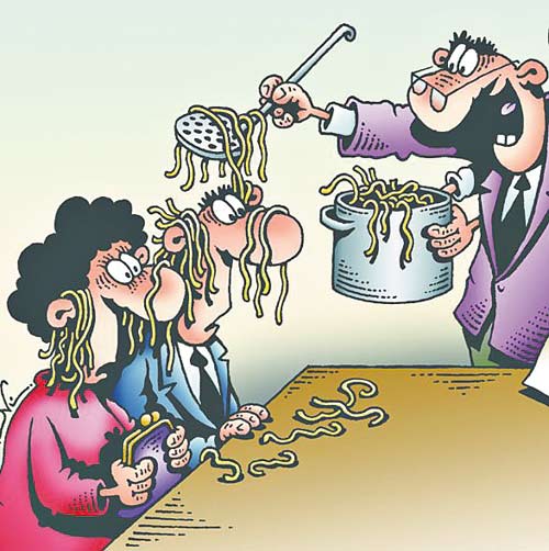 И вот, старательно запихивая эти макароны нам в рот и одновременно развешивая их с экрана телевизора нам на уши, они вдруг с ужасом обнаружили, что цены взлетели не только на овощи, фрукты, мясо, молоко и яйца, которые, по мнению чиновников и депутатов, народу и не положено есть, но и на рекомендуемые ими макарошки. Ну, и чем же теперь заткнуть населению рот, если и этот товар станет ему недоступен?!
