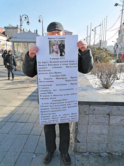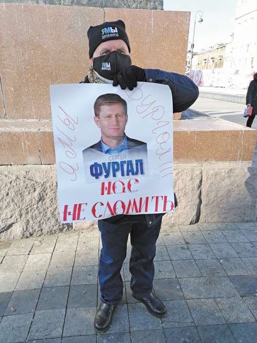 9 января, в субботу, на центральной площади Владивостока прошло последнее, ещё не запрещенное в России, одиночное пикетирование и кормление голубей в поддержку народного губернатора Хабаровска Сергея Фургала, ровно полгода назад арестованного и увезенного в Москву.