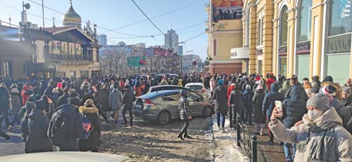 Спустя пятнадцать минут, началось шествие в сторону «Малого Гума», но на первом пешеходном переходе колонна решила перейти дорогу. Несмотря на требования сотрудников полиции, люди продолжали идти по пешеходному переходу, начались задержания.