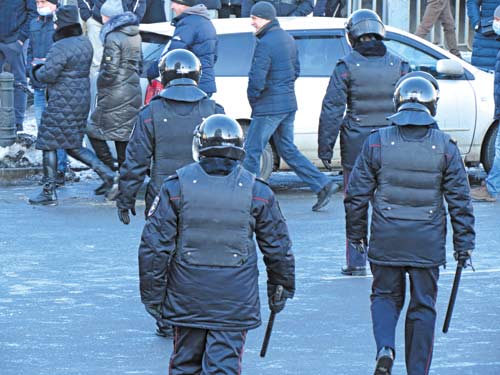 В сторону полицейских митингующие начали выкрикивать нецензурные выражения, в ход пошли снежки, оранжевые пластмассовае придорожные конусы-ограничители... ОМОН продолжал вытеснять протестующих в сторону гостиницы «Версаль». На этот момент было задержано около двадцати человек.