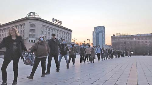 Далее – финальный, жизне- и правоутверждающий хоровод наперекор силовой вязи бронемашин и их бойцов на заднем плане, готовых планово «рвать и метать» и пока стесняющихся присоединиться, взявшись за руки с силой потенциала народного большинства, а лишь отстукивающих дубинками по своим ногам, разминаясь, ритм площадного запала.