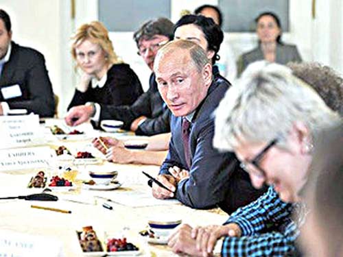 Говорили на Собрании и собственно о литературном творчестве, о проблемах, о сложном положении писателей, драматургов, поэтов, издателей… и о школьном курсе литературы, о проблемах преподавания, об отобранных уроках и сложностях с программой. Но все это – как-то безрезультатно. Потому что это, на самом-то деле, не предмет разговора с президентом. Он может выслушать пожелания публики, конечно, но здесь, немедленно, он не может разрешить все проблемы и принять необходимые меры. Надо вопрос изучить, посоветоваться с экспертами (хотя бы с теми, что остались), то да се…