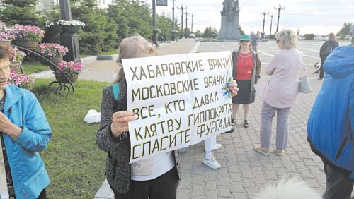 Третий день жители Хабаровска выходят на бессрочный пикет. Активисты весь день стоят на Комсомольской площади, требуя медицинского обследования для Сергея Фургала в гражданской больнице.