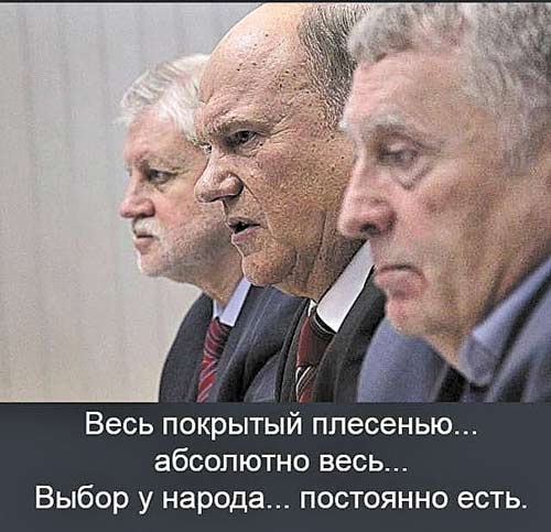 Кстати, это ещё цветочки. По моему мнению, после успешной операции по фабрикации выборов (а власти, очевидно, не сомневаются в этом) и своей фиговой победы, они начнут отыгрываться и закручивать сильнее гайки. Во-первых, за то, что так мало проголосовали и так много пришлось фабриковать, во-вторых, им тупо нужны деньги: поистратились на своё шоу. А здесь будут обирать всех, не зависимо от политических взглядов и пристрастий. К тому же нас ждет, полагаю, невиданный взлет цен, который уже наши боссы сдерживать не в силах. Надеюсь, вы не верите в их предвыборные сказки про нашу дальнейшую райскую жизнь?