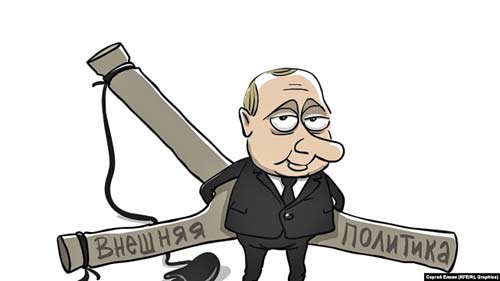 Но в этот раз осуществление его военных побед вызывает большие сомнения, здесь можно шлепнуться в такую грязную лужу, что вряд ли удастся и отмыться. Так что вполне возможно, Кремль ограничится ролью моськи, лающей на слона.